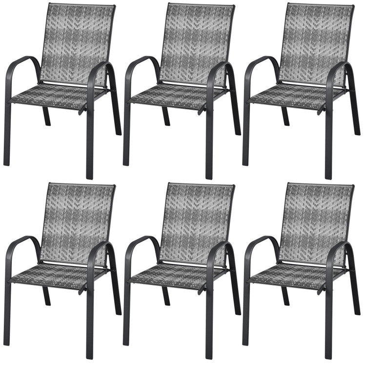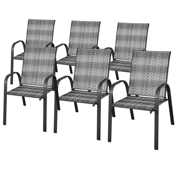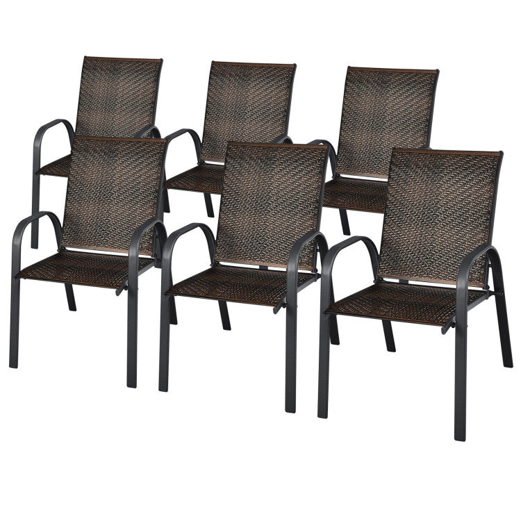 Set of 6 Outdoor Rattan Dining Chairs Patio PE Wicker Stackable Chairs with Sturdy Steel Frame