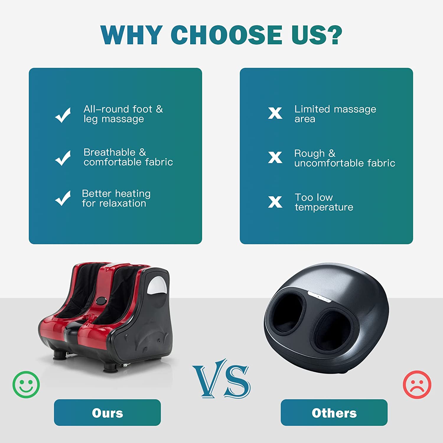 Ergonomic Design: Our Shiatsu Electric Foot Calf Leg Massager is ergonomically designed. We use heat, deep kneading, vibration and rolling on this foot massager. This replicates the ancient massage as it targets the sensitive points of the calves and soles of the feet. We hope it relaxes your feet.