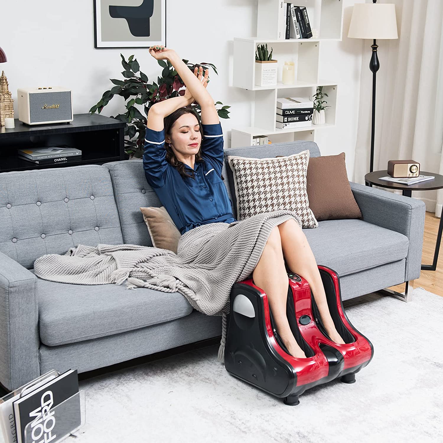 Multiple Foot Massage Modes: Shiatsu, Relaxing Vibration, Rolling and Heat. You can choose the mode you like. The partially flexible kneading plate gives you a great massage experience like in a spa. Kneading and vibration combine to deeply massage your calves and feet.