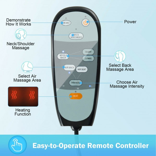 Different Massage Intensity: The seat and waist are designed with a compression massage with 3 available intensity settings to relax your hips and waist. Additionally, you can choose the focus of the massage to tailor to your specific needs for the back area (upper back, lower back and back.